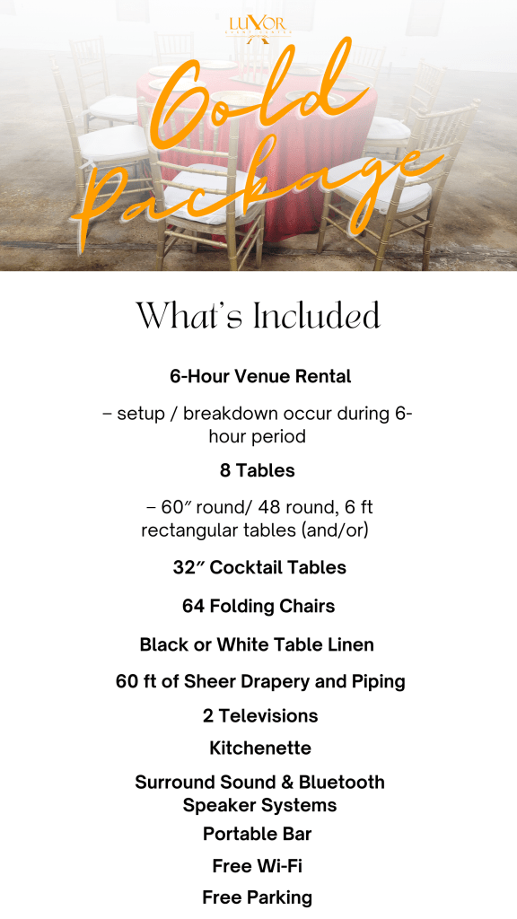 A $500 non-refundable retainer reserves your date for Luxor packages. Wedding packages require a $750 retainer.